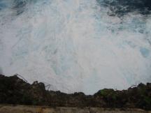 海が荒れていて迫力満点,潮が吹き上げ られる度にびしょ濡れ状態でした. もっと先まで行って見学したかったので すが,危険を感じてここまで.