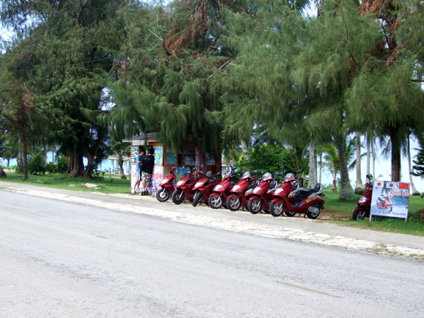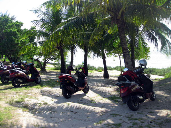 スーサイドクリフから帰ってきた一行は、タガビーチの駐車場に、スクーターを海に向けて駐輪していました。