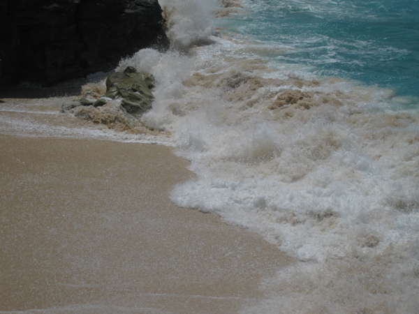 ドドーーン!足元の砂が急になくなり足が届かない。沖に流されていく!やばい!こりゃ、やばいぞ!前に前に泳いでも、砂まみれの海に飲み込まれていく。