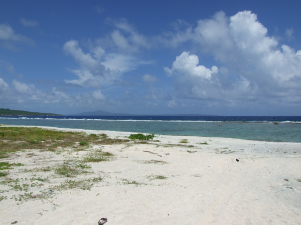 さて、そこからしばらく北に向かうと右に曲がる細いジャリ道があります。転倒しないように注意しながらゆっくりガタガタ進みます。すると、道の先に美しい海が見えてきました。「ロングビーチ」です。昔、ドラマ「ビーチボーイズ」のオープニングシーンで使われた長くて美しく真っ白のビーチです。