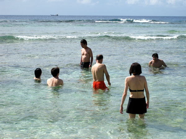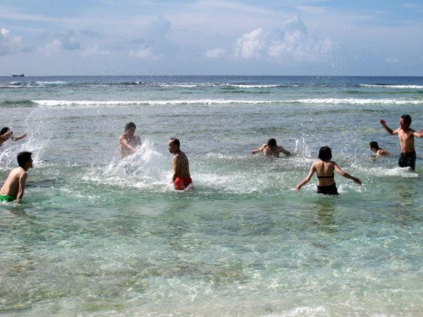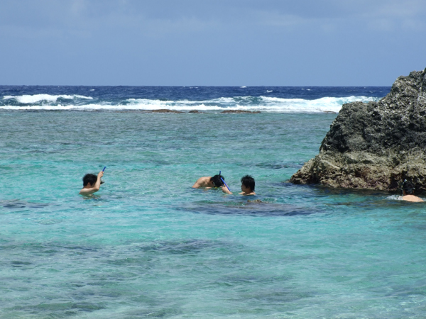 食事が一段落すると、みんな海でシュノーケリング。(シュノーケリングセットもkeibinさんが用意してくださっていました。いたれりつくせり。)