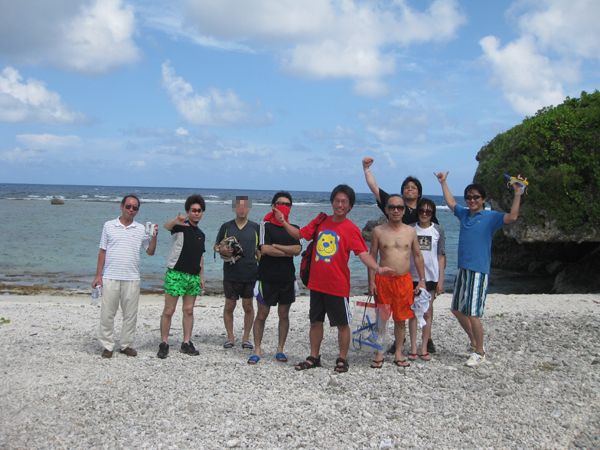 ウミウシを捕まえ、ちくわちゃんに投げようとして逆にウミウシに白い粘液をかけられたマスター(粘液が取れなくって大変だったみたい)。犬神家のように水中で逆立ちするhakさん。岩場の下にトンネルを見つけてくぐって頭をぶつけたt.t.さん。もくもくと一人でもぐっていた静岡空港さん。Youko-tanさんもシュノーケリングを楽しんでいらっしゃいました。