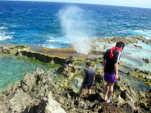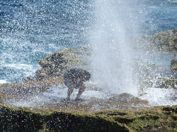 ロータリーを抜けて道なりに進み、「ブローホール(潮吹き海岸)」に到着しました。