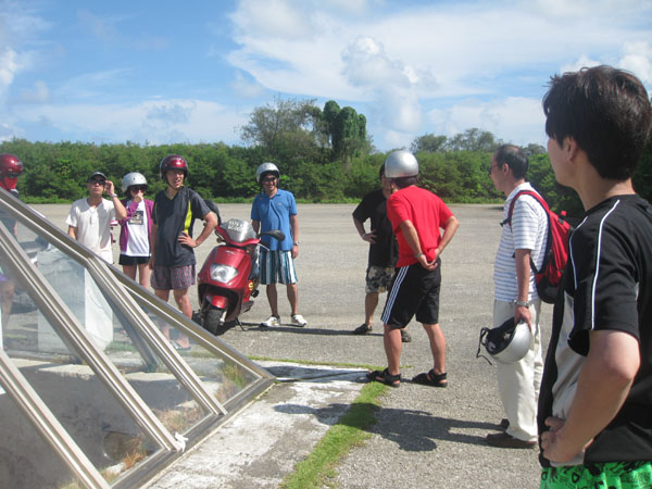 9月27日午前10時半ロビーに精鋭部隊が揃った。隊長:リゾカジマスター、キャプテン:ちくわちゃんをはじめ、t.t.さん、youko-tanさん、hakさん、Mr.GBRさん、KONKONさん、静岡空港さん、MKちゃん、カジ郎の計10名。残念ながらkeibinさんは足が丈夫じゃないとのことで不参加でしたが、keibinさん以外はメンバー全員参加の探検スクーターツアーとなりました。