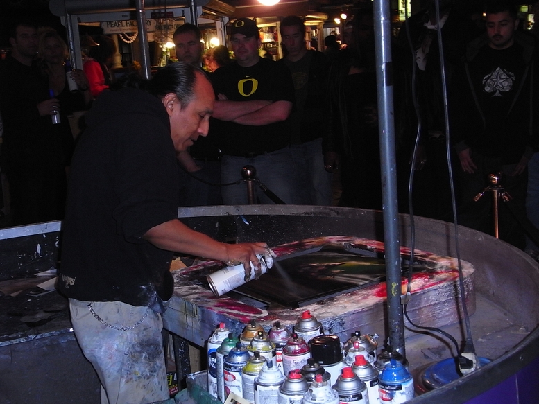 そこそこ絵心のある人が、結構な時間を費やさないと描けないレベルの絵をものの10分余りでスプレーだけで描いていく早業!いや~、圧巻(゜д゜ ;)