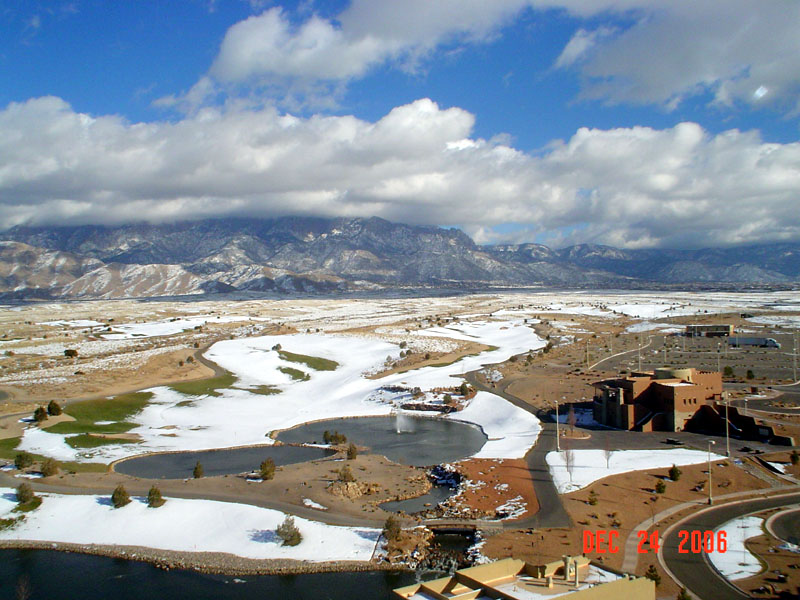 アルバカーキーまで430キロ、雪が積もっているなかまずカジノホテルにチェックインする。Sandia Resport & Casino1年前に出来た新しいインディアンカジノでゴルフ場もついている。