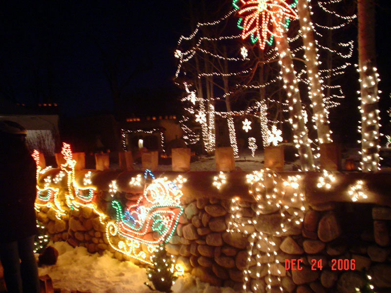 この日はクリスマスイブで毎年12月24日にだけサンタフェで行われるローソクのルミナリアというイベントを観るのが目的でやってきたのだ。とてもきれいで家族一同感激。日干しレンガの町並み、インディアンとメキシコ文化が融合された素晴らしい町です。