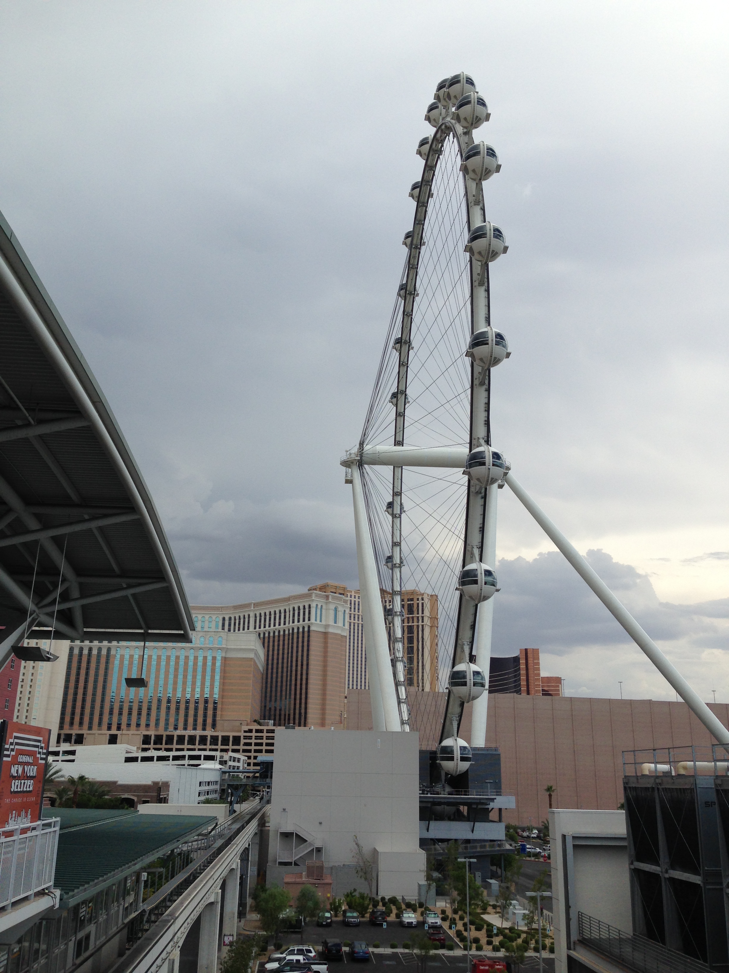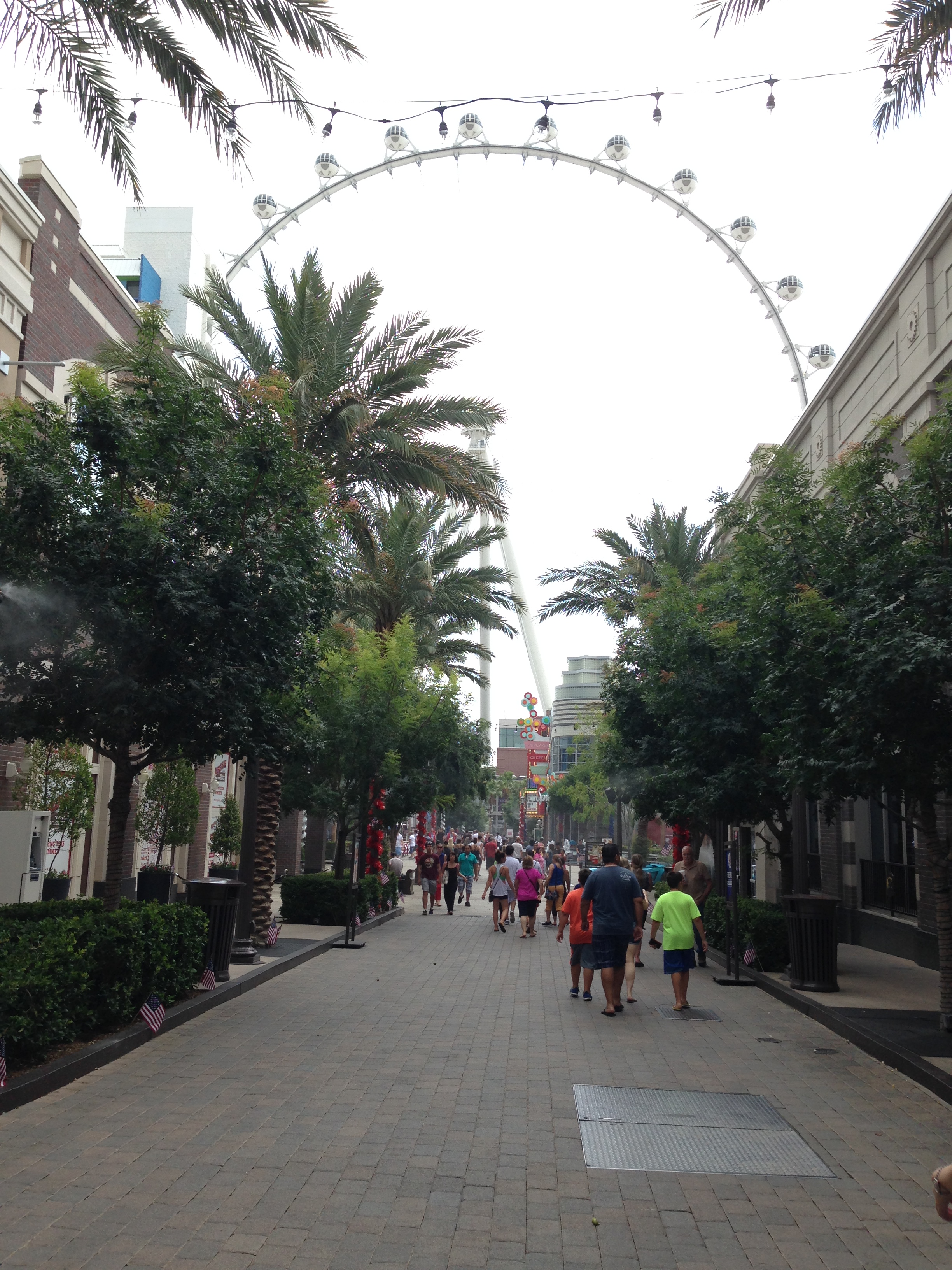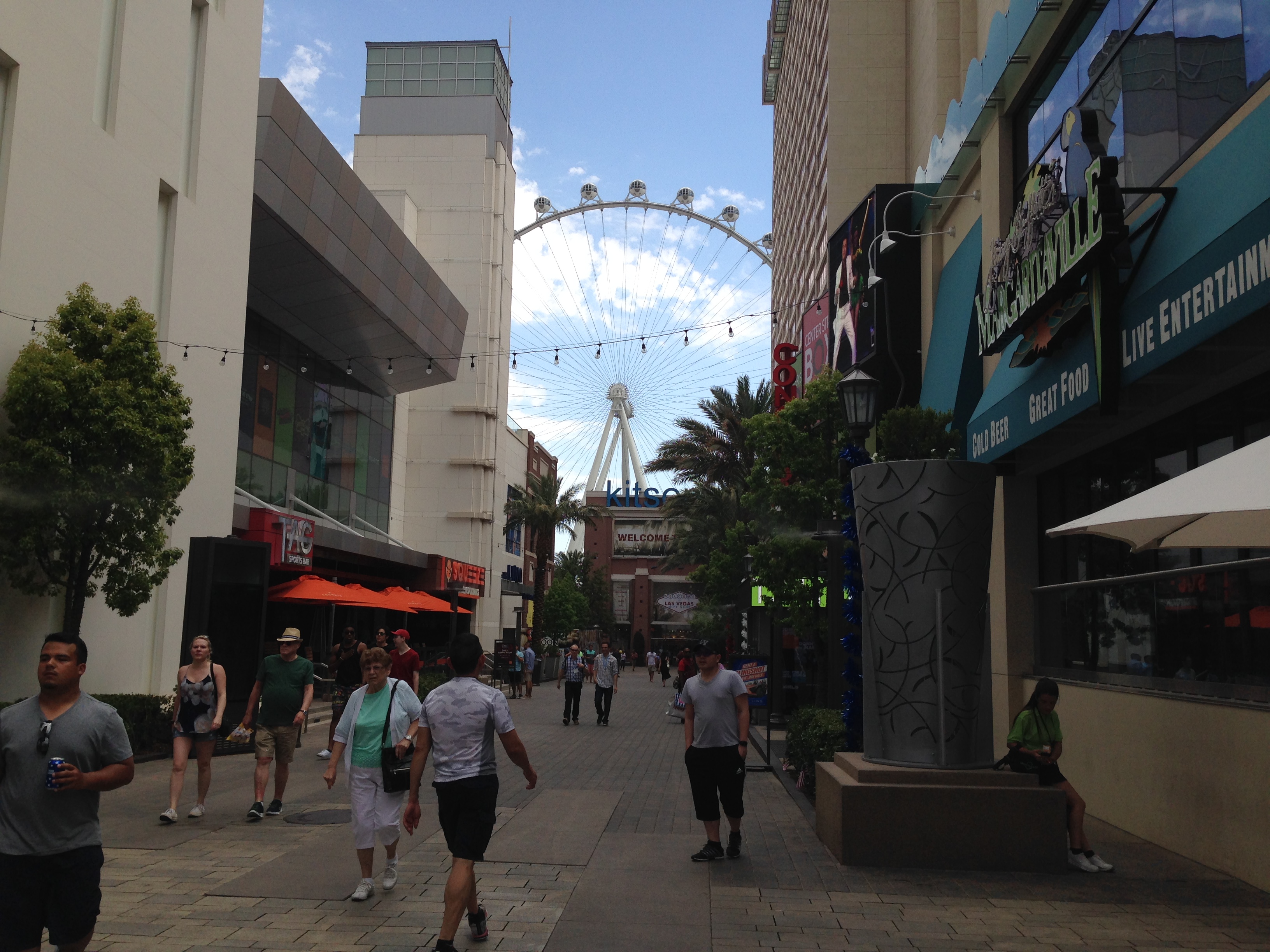 そして、LINQの突き当りにドドーンとそびえるのは観覧車「The High Roller/ハイローラー」です。観覧車のネーミングで思いつくのは「シンガポールフライヤー」とか「ロンドンアイ」とか「ニューヨーク・ホイール」ですが、「ハイローラー」とはラスベガスらしいネーミングです(笑)。