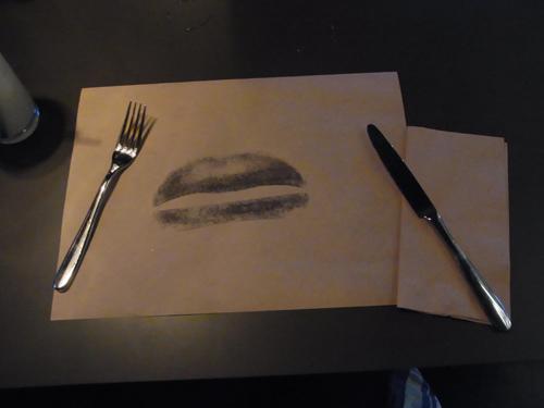 ハンバーガーのバンズと、唇のリップマークを合わせたようなのが、マークなんですね。