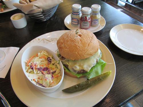 これぞバーガー!って感じでがっつりです。ケチャップではなくマヨネーズ中心だったので、カロリー高かっただろうなぁ…(汗)。なお、サイドはポテトかコールスローか選択肢だったので、サラダ成分補給にしました。ピクルスが大胆なサイズでびっくりしましたが。