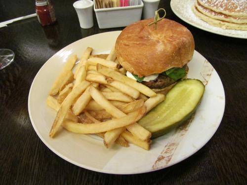 これは、宿泊しているARIAにある24時間のcafe(カジノフロアにあります)にあるバーガーです。その名も「ARIA BURGER」です、まんまだな。