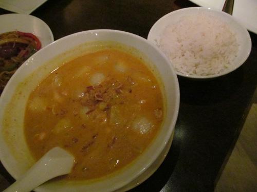 私はあまり辛いのは得意ではないので、唐辛子マークが付いているのは注意するのですが、このお店はとても優れていて、唐辛子マークのメニューについて辛さが10段階から選べるのです。なので一番マイルドな レベル1の Yellow Curry で chiken にしました。(カレーの肉っけな具は選択肢が適当にあります。Yellow Curry は鶏牛海鮮の3択です)