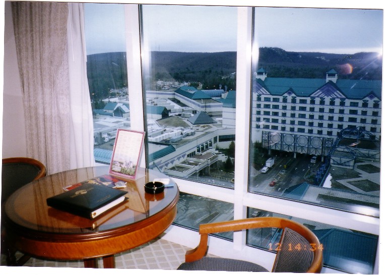 館内地図がないと説明しずらいのですが、公式サイトにある豪華そうなホテルの写真は3ヶ所あるホテルのうちの1つ「Grand Pequot Tower」です。おそらく30階建てくらいです。824ルームとあります。このホテル(もちろん1階はカジノ)の左側(正面から見て)にぴったりくっついて「Great Ceder Hotel」があります。面積はgrand pequotと同じくらいです。10階建てくらいです。このgreat cederの手前に「Rainmaker Country」というカジノ専門の建物があります。面積は上記2つを合わせたくらいです。