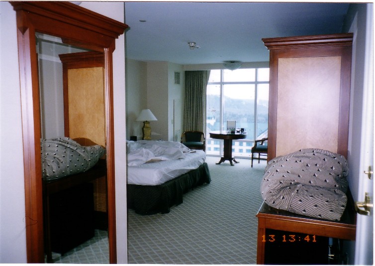 バレーに車を預けてチェックイン。ロビーから直接エレベーターで上がったのでカジノの様子はまだわからない。2006号室までエレベーターから遠く、これは大変だと思っていたら、部屋のすぐ近くにもエレベーターがあった。よかったぁ。