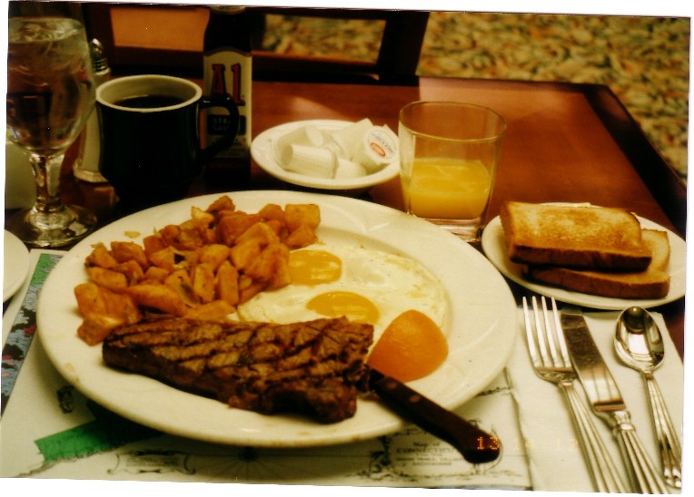10時頃、2階のホテルロビー近くのカフェ「Fidelia’s」に行く。ステーキ&エッグスを注文。おいしかった。