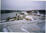 片側3車線のよい道だ。10分も走ると周りは林と森の中間のような森林地帯に入り、心地よいドライブを楽しむ。周囲は雪が被っているが、路面は乾いている。