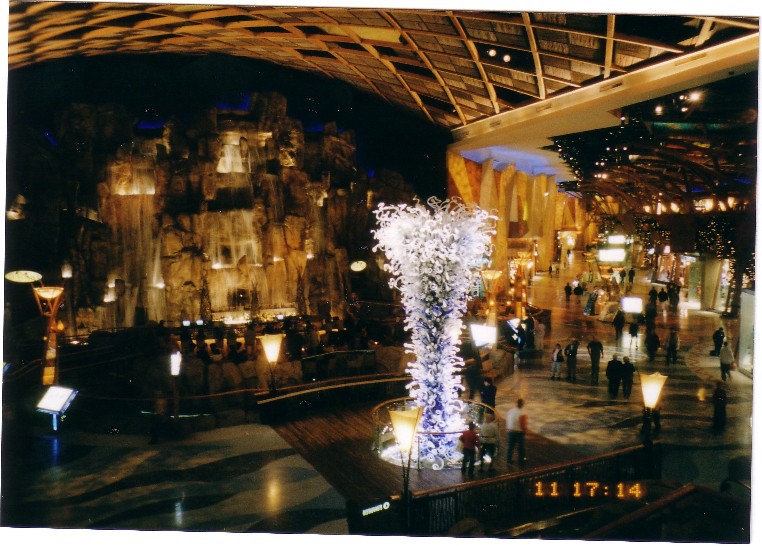 モヒガンサンの2つのカジノをつなぐ通路の中央部の2階、ホテルロビーへのエスカレーターを上がった所から。左正面が「Taughannick Falls」、右奥の通路の先が「Earth」カジノ