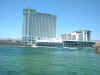 予約なしの飛び込みでいったんですが町に入って一番目のリバーサイドホテルというところに1泊$32で泊まれました。ドン ラフリン氏のホテルでこの人が196?年に8室のモーテルから始め今に至っているようでこの町はこの人が発祥のようです。現在もご存命でカジノチップをはじめ、いろんなところにお顔がありました。