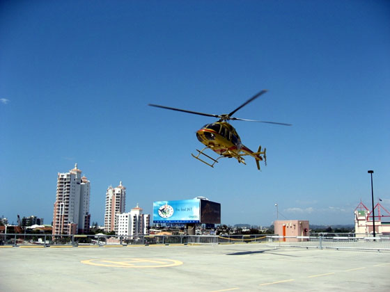 このヘリコプターライド、コンラッド・ジュピターホテルの駐車場屋上から飛び立ちます。