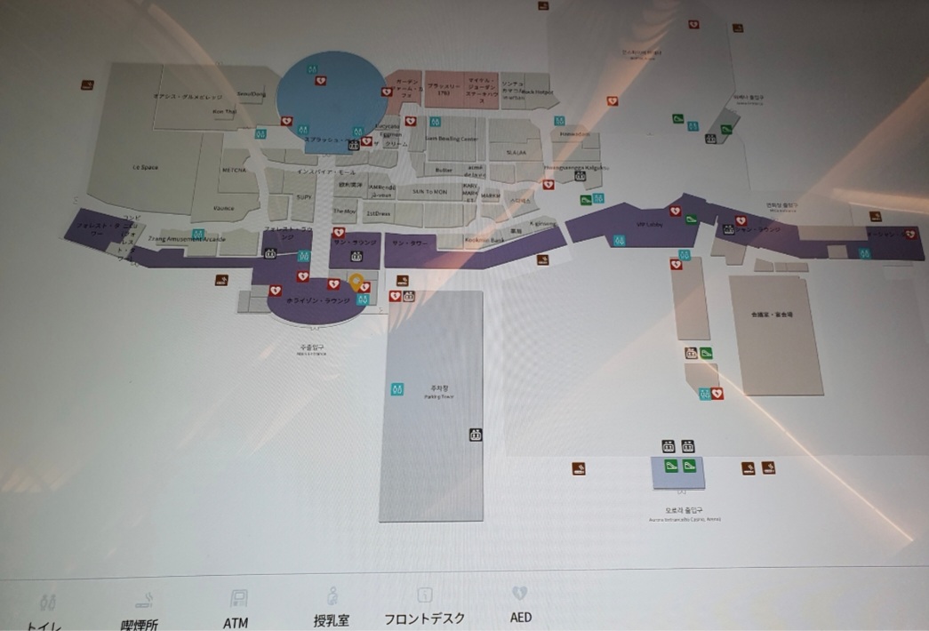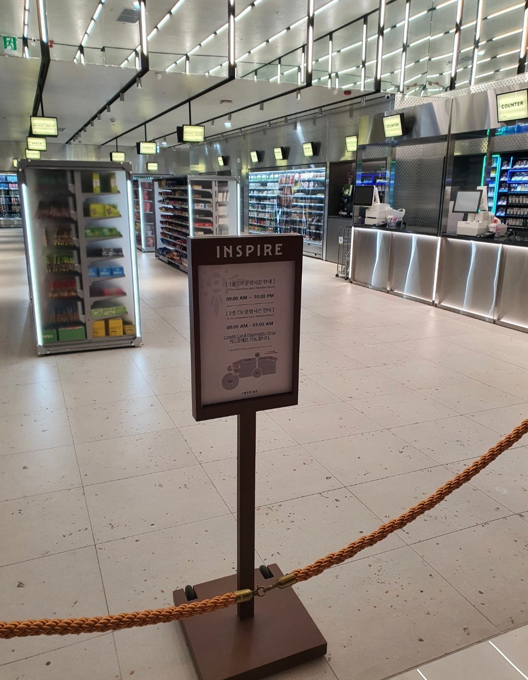 メインロビーからカジノまで少々歩き、商業スペースを通り抜けます。途中にコンビニ在りますが24時間ではありません。また、現金での支払いができませんのでクレカかプリペイドカードでの決済になります。手持ちのコリアツアーカード(TMONEY)が使えました。品揃えは市中コンビニに近いです。