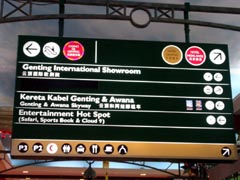 各ホテルとカジノは蟻の巣のような通路でつながっており、通路のいたるところに添付写真のような案内板があります。この案内板をよーく見て進まないとあっという間に迷子になってしまいます。何回か迷子になった後、やっとカジノにたどりつきました。