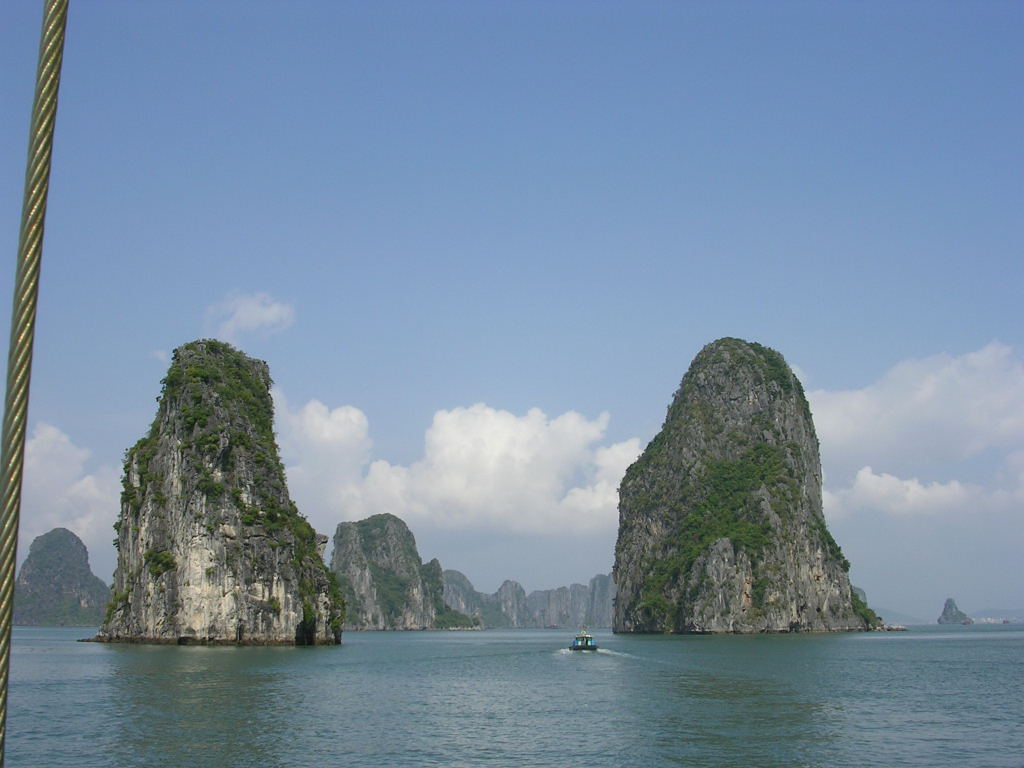 ハロン湾についてそのままハロン湾クルーズ船に乗り込みました。他の団体と一緒になるのかなと思っていたら私一人で40~50人乗りの船を一台貸しきり状態でした。この日のコースはティェンクン洞を中心にめぐる4時間のコースで最初はまっすぐティエンクン洞のある島へまっすぐ向かい、島に着いた後は鍾乳洞めぐりでした。山登りがあり普段運動不足気味の足には結構しんどかったです。この鍾乳洞はそんなに大きいものでもなく、大きさでは2日目に行ったスンソット洞の方が大きかったです。鍾乳洞めぐりが終わると、本格的なハロン湾クルーズが始まりました。あの奇石、奇岩の島の間を進んでいくのですが、こればかりは書いても言葉で言い尽くせない物があります。写真でも表現しきるのは無理なのですがせめて雰囲気だけでもあじわっていただければと思います。
