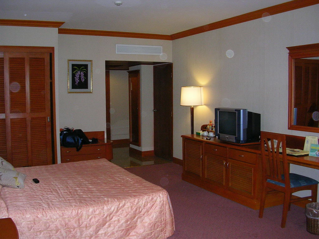 今回のカジノがあったRoyal Hotel & Villaですが、このホテルは普通のホテルの様にホテル棟が一つあって、客室とあらゆる施設がその棟に入っているという形でなく、ホテルのフロントとレストランはカジノと同じ建物の中に、敷地内にカラオケ、サウナ&SPA等々の建物が別々に建っており、客室用の建物(各フロアに5-6室ある3階建ての建物)が敷地内に点々といくつかあるというタイプのホテルでした。カジノを出た所にあったホテルのカウンターで話を聞いた所、海外からも旅行会社を通して予約はできるとの事でした。(香港ではやってないといわれましたが)そのときに部屋の価格表をもらったのでまた添付しておきます。結構なお値段です。ホテルの人曰く、5つ星なのでそれくらいしますよとの事です。あとこのホテル台湾系の為、カジノも含めて中国語の方が通用します。(私には便利でしたが)