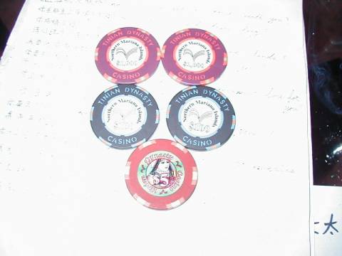 ぽちぽちと打っていると、$200位の浮きとなり、やはり停滞。今日は、サイパンからのツアー組も少ないようで、日本人(らしき人)は、猿と昨日のクールな男性のみ。彼は猿の正面のBJテーブルで例のスタイルで淡々とプレイしている。と、後ろから肩をたたかれました。振り返ると、昼間のおねいさん達。増殖してるよ、って5人組での1日ツアーらしい。ツアー代に含まれているこのホテルでの夕食を済ませ、「体験カジノ」って事。