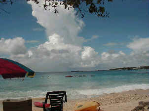 あいかわらず青い海と空。風も吹いてとってもイイ気持ち。ちょっとシュノーケルをひっかけて海の中へ。ソーセージを指でつぶしてフィーディング(魚の餌やり)。あ~なんか気が遠くなる。冷静に考えれば3時間弱しか寝てないのね、ウッキー…。このままいると天国に限りなく近い島になってしまうので、10分位で陸に上がり、木陰のチェアに横たわる猿。すぐ寝てしまいました。気がつくと午後2時。ん~良く寝た。海の家に頼んであった昼食のハンバーガーは、ホテルに持ち帰って食べることに。