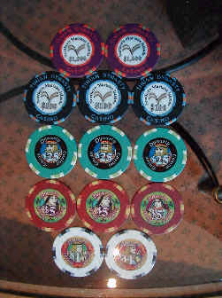 17:30 挨拶代わりにBJ$5(ブラックジャック 最低賭金$5)のテーブルへ。当然だが、小切手と引き替えにいきなり$2,000分のCHIPが渡される。「オールブラック?」ディーラーが訊いてくる。とんでもございません。$100分をレッド($5)に、他はブラック($100)でもらう。 ん~、リアルゲームは久しぶり。やっぱりカジノはいいねぇ。