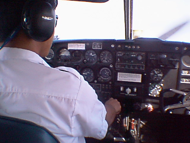 リゾカジさんとこの掲示板で、「お魚さん」や「テニアン大好きさん」に事前情報を頂いていたおかげで、迷うこともなくFREEDOM AIRでテニアンへ到着。しかも、予想通りに、搭乗したFREEDOM AIR のセスナが超「おんぼろ」で嬉しくなってしまった。セスナには車の距離計に相当する「飛行時間計」があるが、これが1万6000時間↑を指していた。ちなみに飛行歴43年の教官の総飛行時間が1万3000時間。航空自衛隊のジェット練習機として有名だったT33は防衛庁の規定が耐用 7,500時間だから、セスナでこの飛行時間はどうだろうか・・・?。飛行回数がわからないのでなんとも云えないが、かなりのもんです。ああ、すばらしい。$26で、こんなおんぼろに乗れるなんて。機長、記念にオイラに操縦させて下さいぃぃ。もちろん復路もFREEDOM AIR に決定。