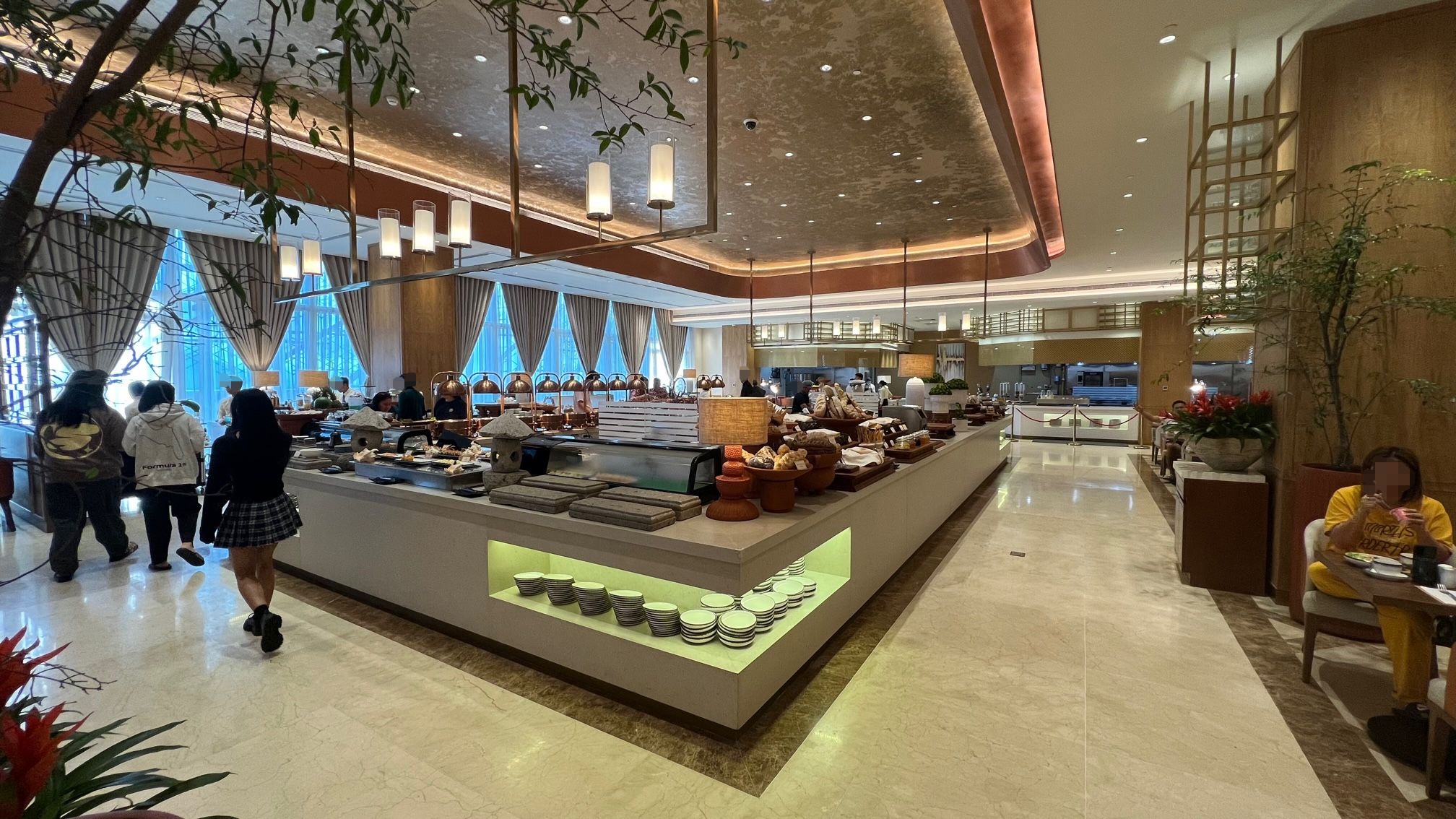 朝食会場は4階で天井も高く、広々した空間。ゆっくり食べられそう。ローカルが半分くらいいたのでは無いかと思います。ドラマに出てくるお金持ちそうなゴルフウェアを着た韓国人夫婦も結構おられました。混んでなかったのもあるがガチャガチャした感じは全くなかった。
