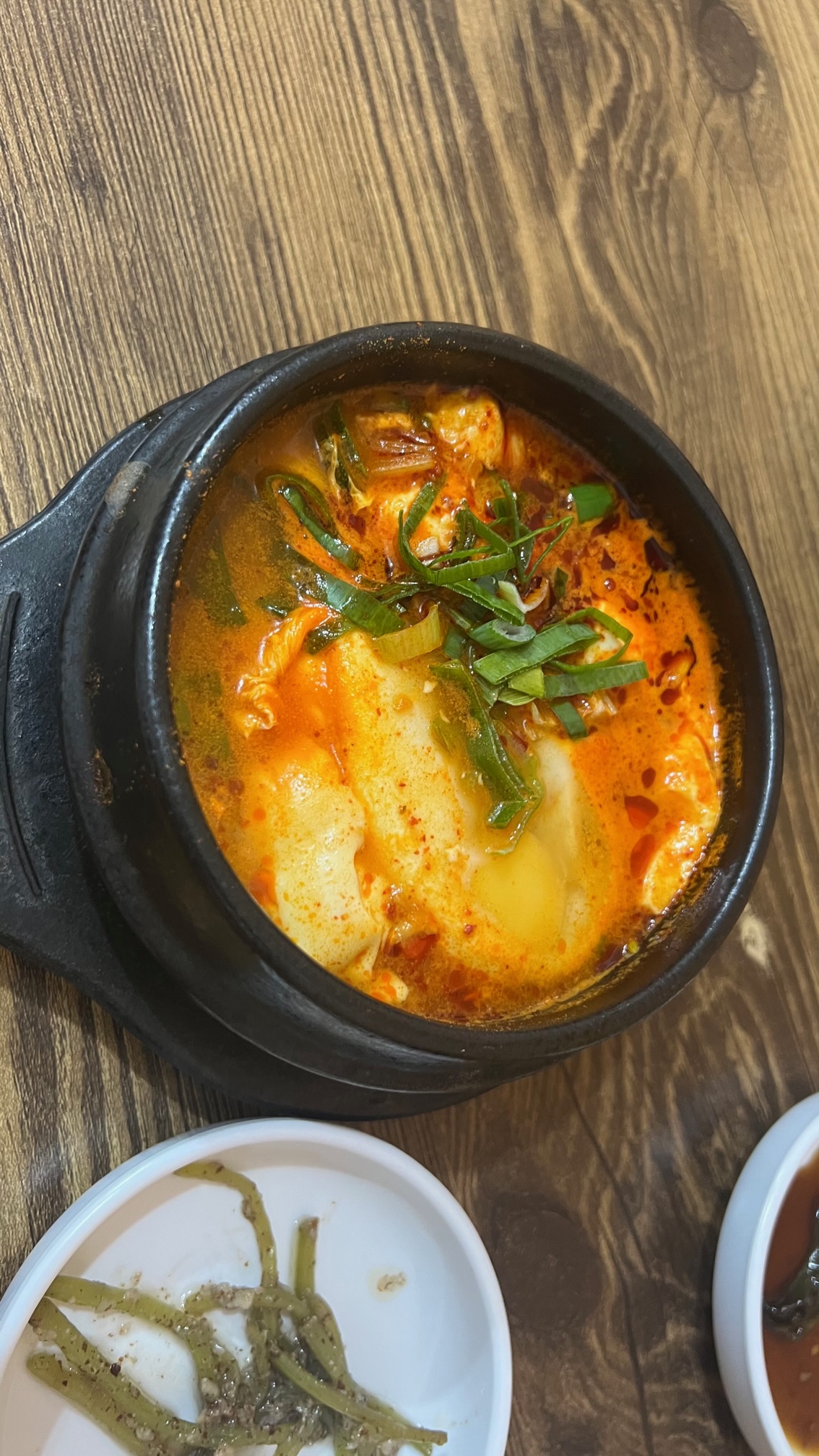 名物は、ポッサム(豚のバラを蒸したもの)との事でそれを2人前、スンドゥブ(豆腐のチゲ?)鍋と、プゴクッ(干しタラの入ったスープ)。