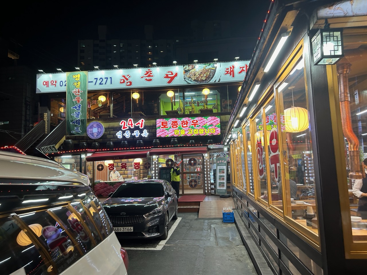 シャトルバスに乗って、現代アパート近くのいつもの焼肉屋で、みんなで勝利を誓い合います。