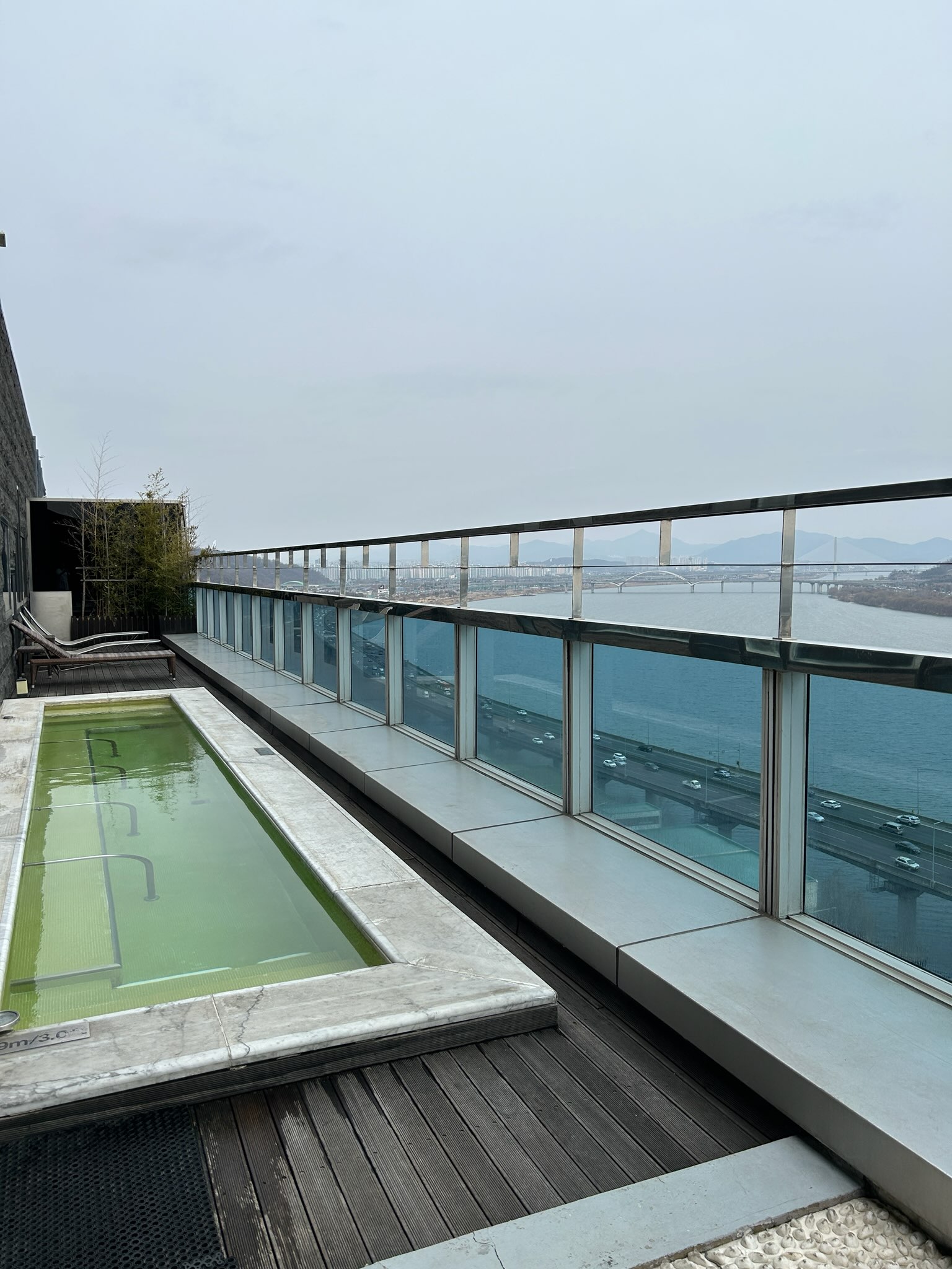 つるんとしたone packのお腹に、屋外ジャグジーの冷たい風はとても心地良かったです。
