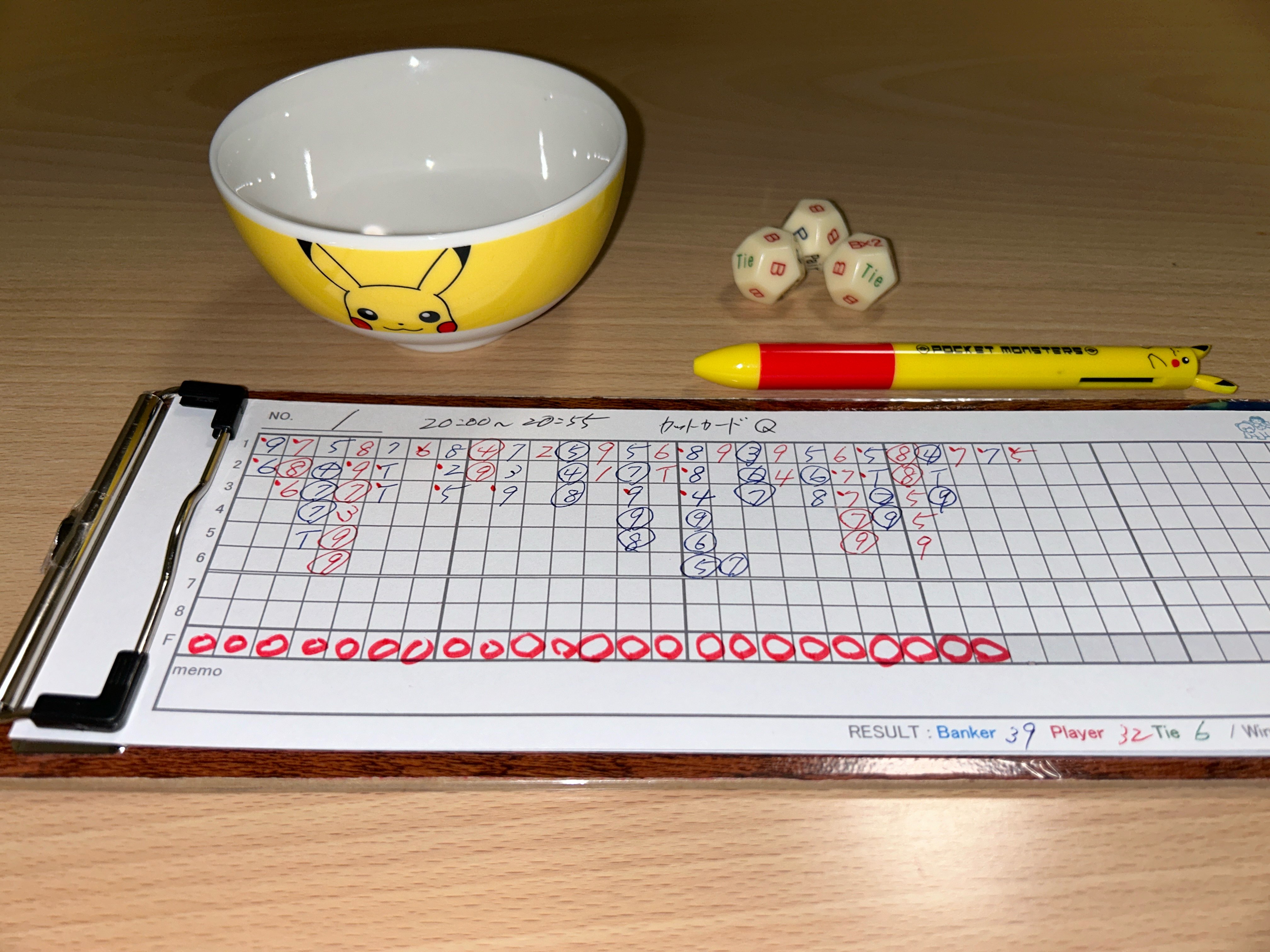 タバコ休憩時の都度、バカラ卓に寄ってもらい、クロスベッティングして数ゲームを消化する。