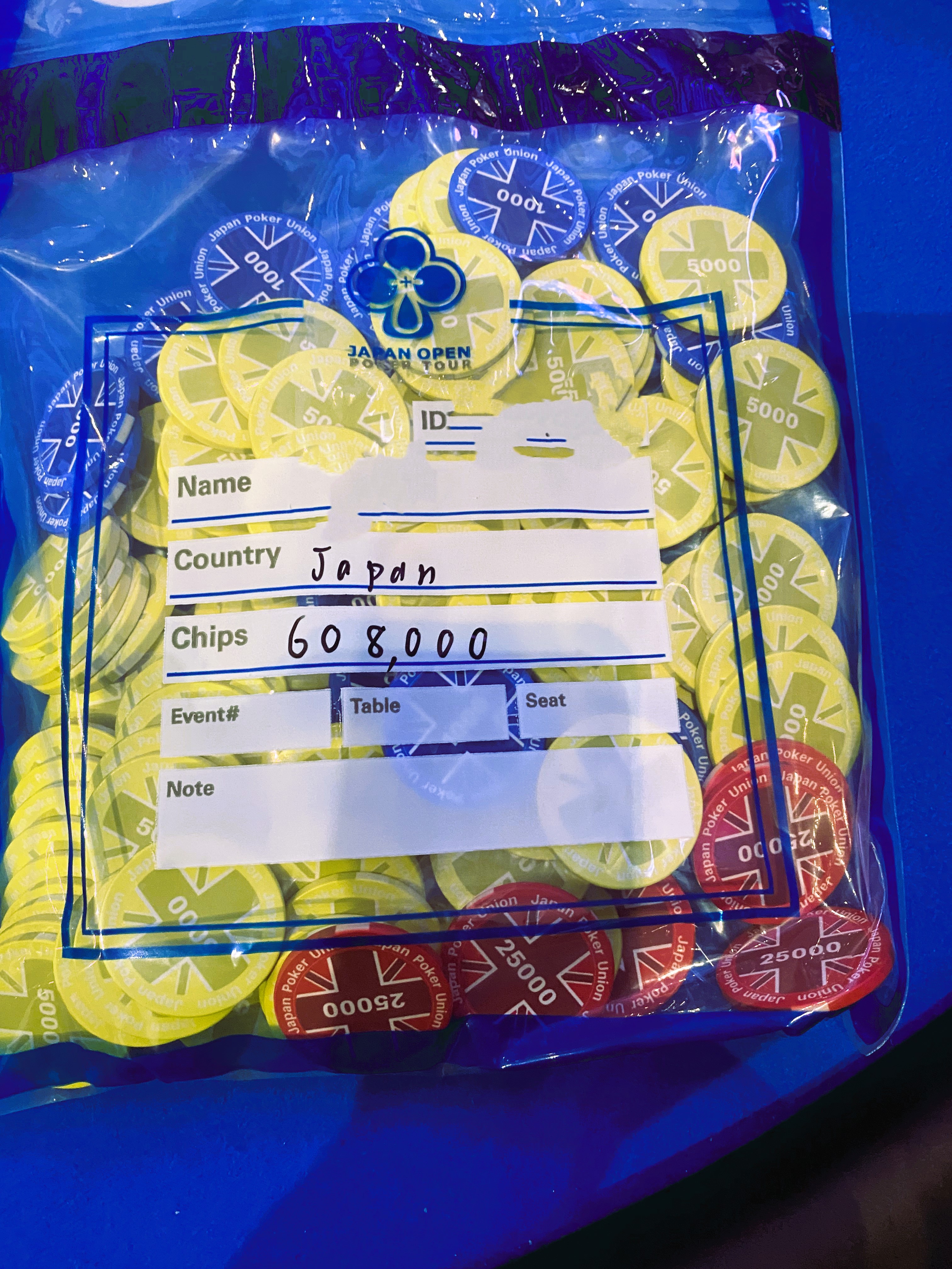 やっと仕事が終わる、とばかりに、フロアスタッフが現れ、当方のスタックと〝Game ID〟の確認作業を始める。最終スタックは608,000点、スタートの約12倍である。