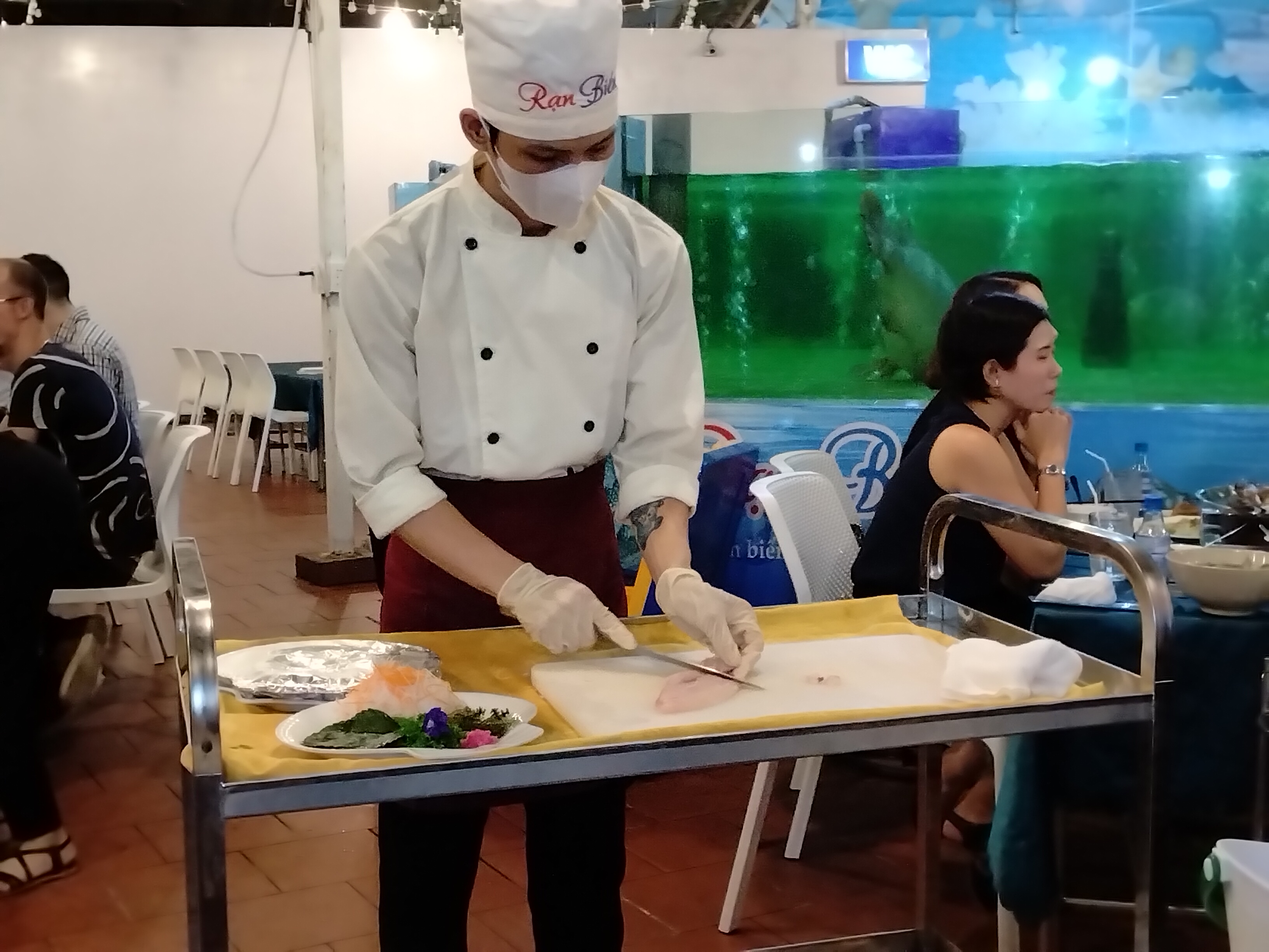 会員証は作りますが、入り口の通行証の機能のみで、テーブルでは提示しません。コーヒーは1ドル、5ドルチップで払うとお釣りはドンで返ってきました。定食は15万ドン(約900円)。