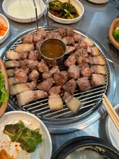 グツグツの石鍋に出てきました。お箸を鍋し入れるとめっちゃ柔らかいです。これを横にある岩塩に付けて食べるとこれまた旨しです。