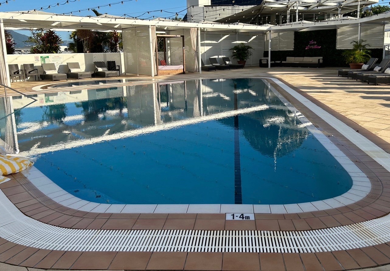 昼からホテルのプールで泳ぎ(浮いて)ます。