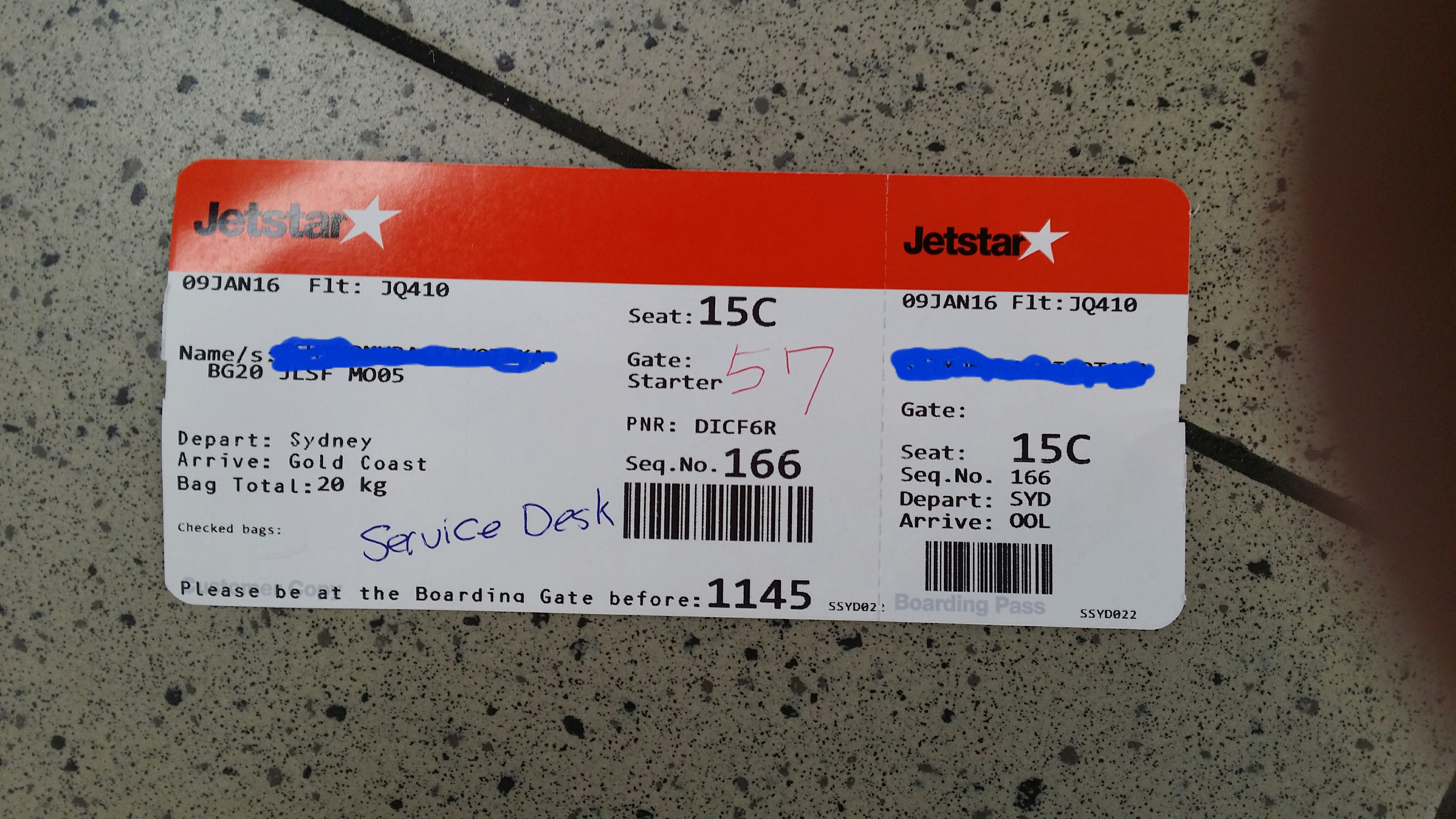 57番ゲートには、jet star , goldcoast , 12:15 とboarding passと同じ事が、