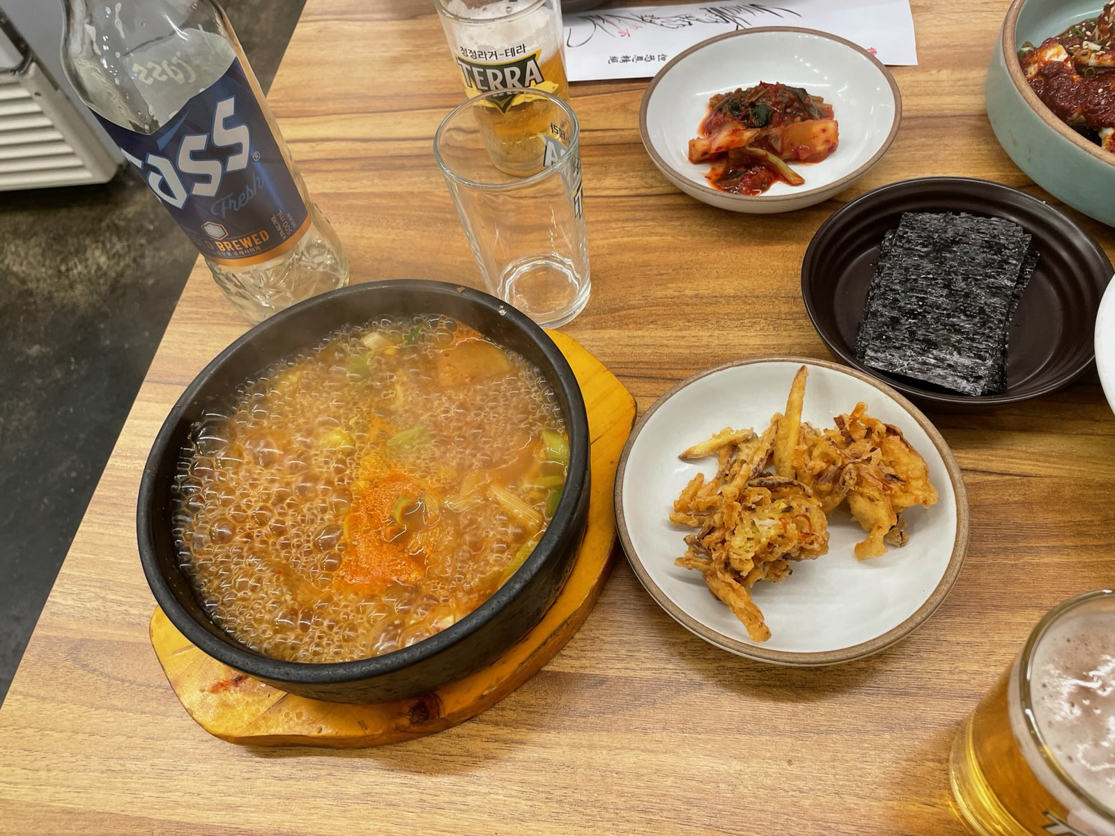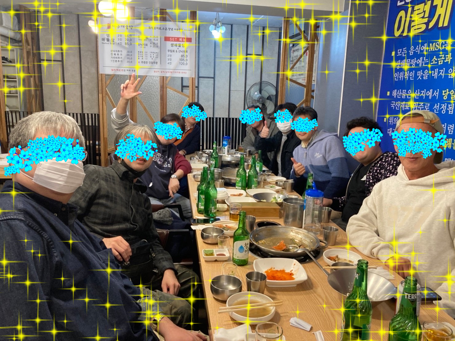 入国後いつもの海鮮鍋屋で食事会です。実に3年ぶりです。ツアー催行の名目はBさんの快気祝いです(H茎手術とのウワサです笑)。