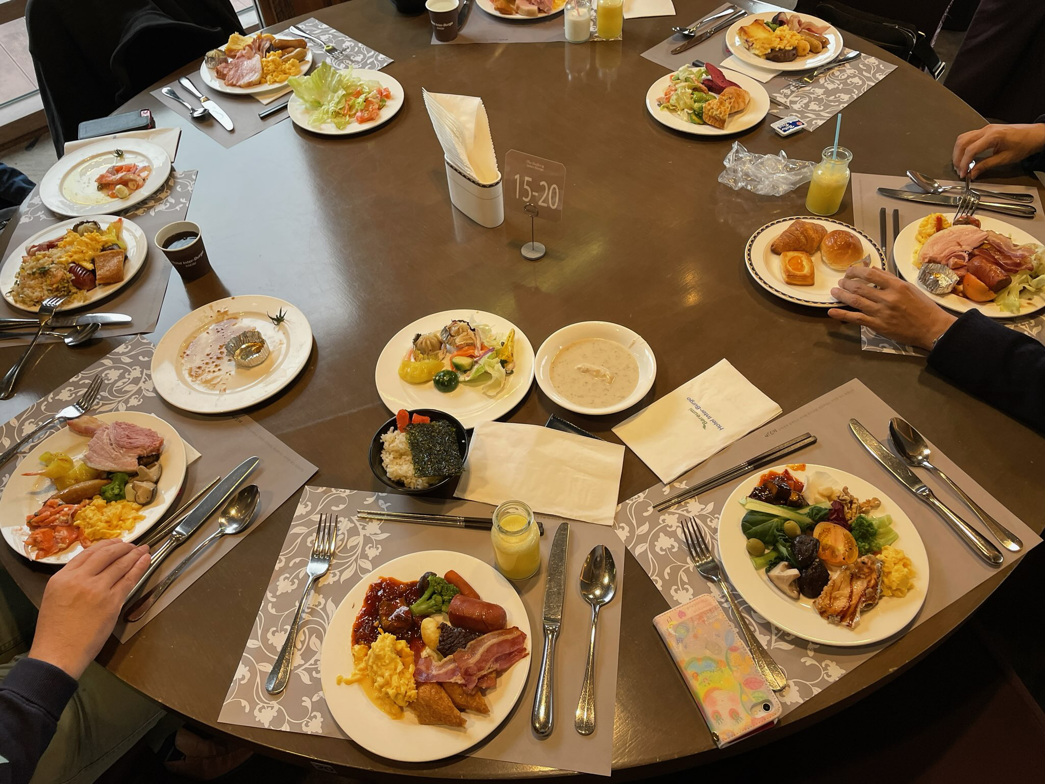 「我々:レストランで朝食バイキングをいただいてもいいですか?」