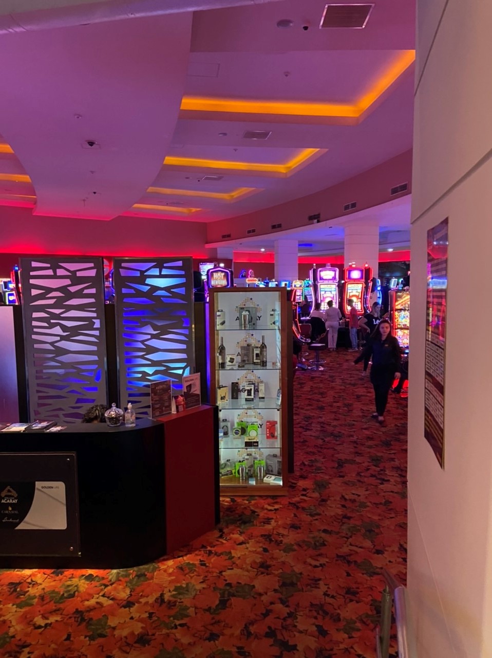 テーブルゲームはルーレットが4台と1番多く、チップは1枚5ブラジルレアル(125円)かUSドルになり、現地パラグアイの通貨であるグアラニーは使えません。ブラックジャックも数台あります。こちらはMin 5USドルと30USドルのテーブルがあります。あとは、ポーカー(カリビアンとテキサス)、ミニバカラが2台ずつありました。バカラはMin US100ドルからMax1,000USドルですので、ハイローラーの方にはつまらないかもしれません。マシンはざっと300台くらいで、KonamiやIGT、Aristocratなど人気メーカーの結構新しい機種があったりして、これは良い意味で裏切られた感じです。