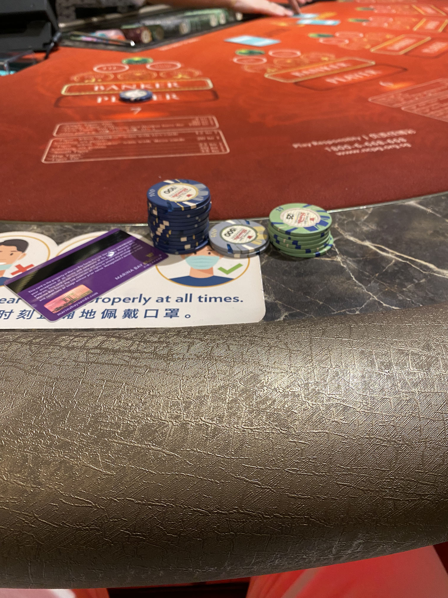 バカラのmin. betはSGD150~、ブラックジャックはSGD25~とコロナ前と変わりはなかったです。