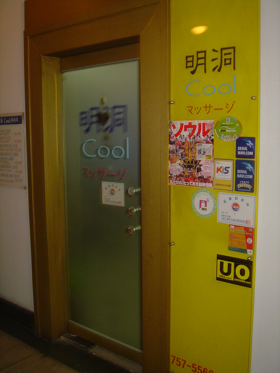 8月30日(木)、関空からソウルへ。「明洞Coolマッサージ」で体をほぐします。貼り紙の変な日本語を見て笑いました。