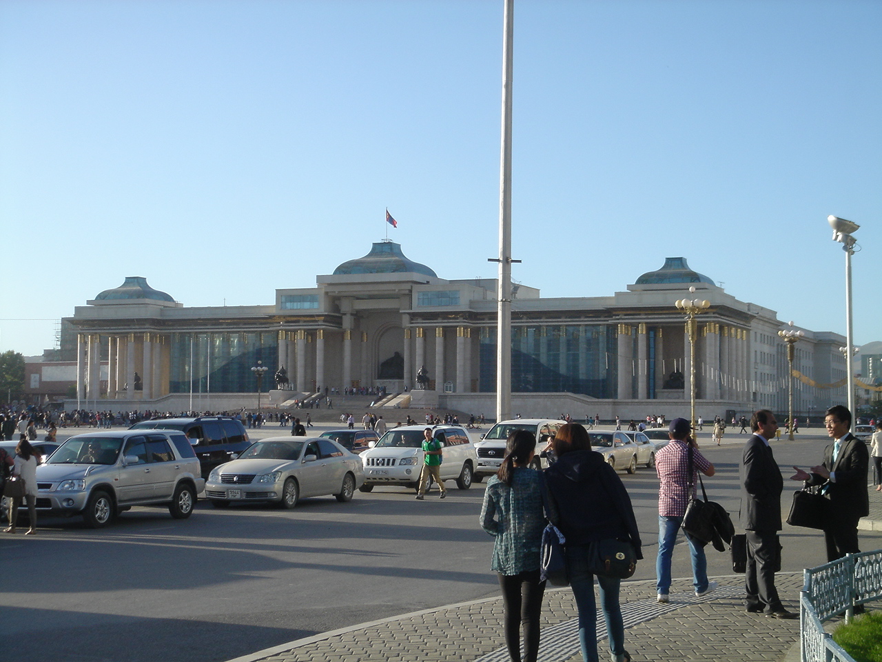 8月31日(金)、朝、ホテル前の個人経営の喫茶店で、油ぎったチャーハンを食べ、坂を下りてソウル駅へ。仁川空港12時20分発の大韓航空でウランバートルへ移動し、14時50分チンギスハーン国際空港に到着。国際空港と言うものの、荷物の受け取りレーンが2つしかない、日本の地方空港並みの設備でした。空港から市内への交通手段についても地球の歩き方には、「空港を出て直進すると大通りが見えてくる。その右側の方にバス停がある。空港からバス停まで徒歩約5分。」と書いてありましたが、当日は雨で発車時刻すら分からないバス停でバスを待つ気にはならず、タクシーを利用することに。つ~か、バス停は普通、空港の建物を出たすぐに設けませんか。何でわざわざ離れたところに作るのよ(苦笑)。空港の待合室内で、紙に目的地と値段を書いてタクシードライバーと交渉しますが、「安い」と拒否されます。3人目くらいの真面目そうなドライバーからOKが出て出発。道路は舗装していないところや、20センチくらい水の溜まっているところもあり、発展途上国であることを感じましたが、無事に目的のブルースカイタワーに到着しました。日本を出発後にフロンティア証券から空港までの迎えについてのメールが届いていましたが、気づいたのはタワーに到着した後でした。