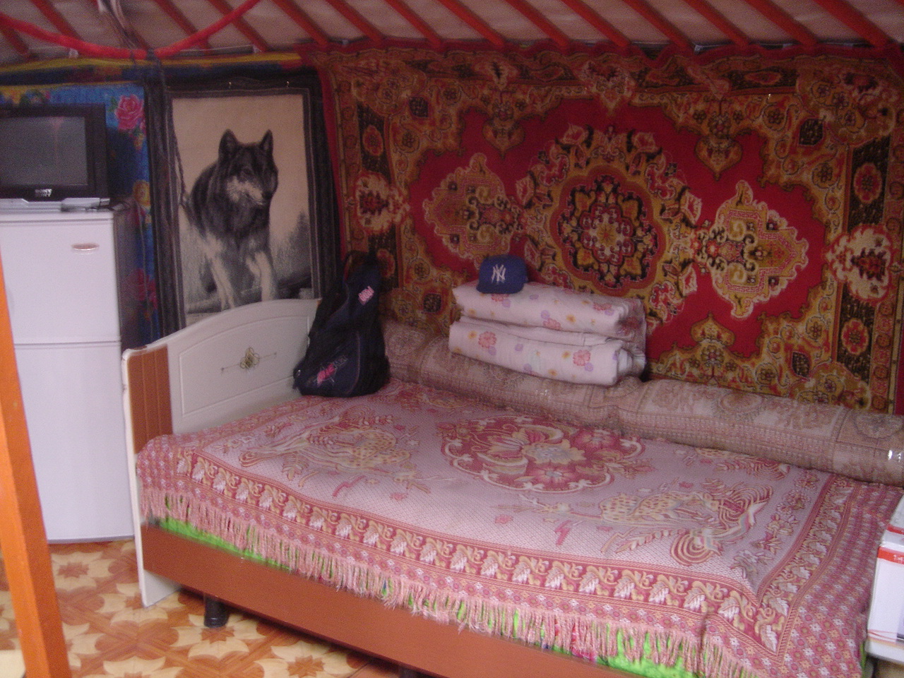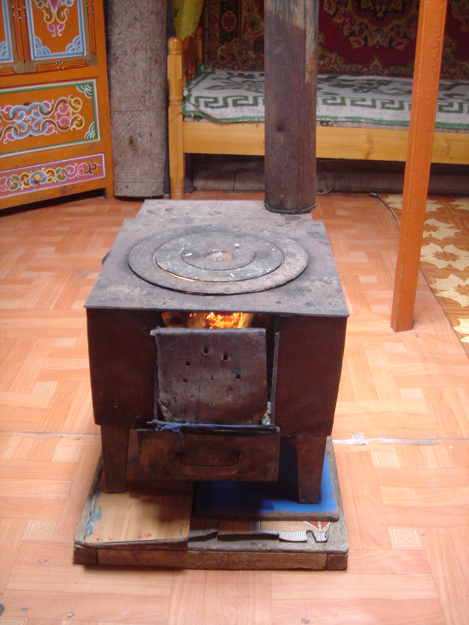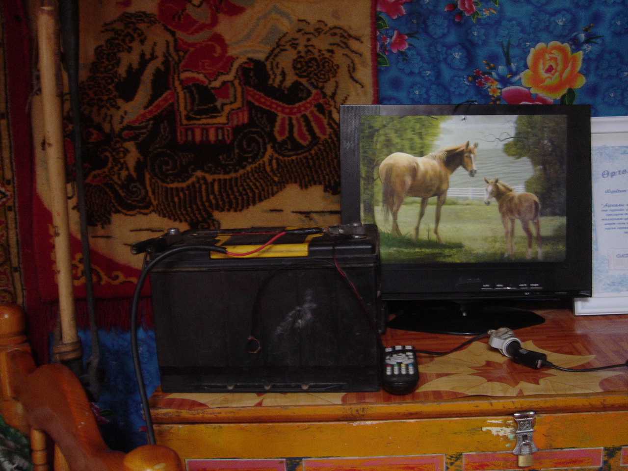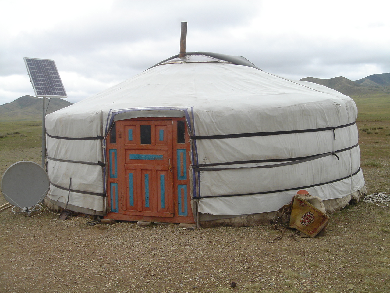 途中、立ち寄った遊牧民のゲルでは、テレビと冷蔵庫の電源に太陽光パネルが使われていました。また、油分が多いので、馬の糞が暖炉の燃料になっていました。