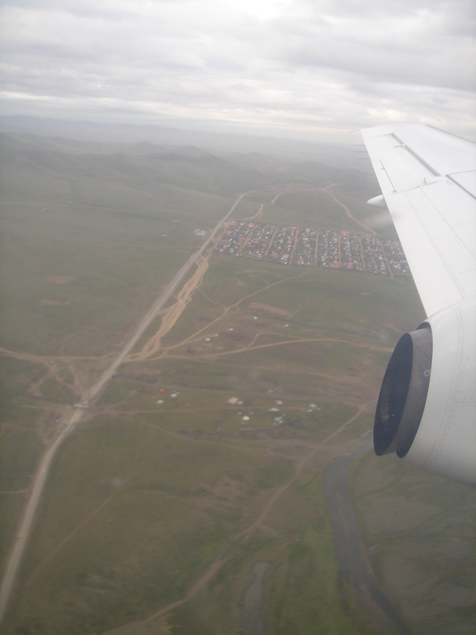 9月2日(日)。鉱山ツアーに参加。チンギスハーン国際空港で20人乗りくらいの飛行機に乗り、離陸を待っていると、井形氏と英国人大学生が乗り込んできました。「当初は参加予定ではなかったが、仕事が早く終わったので参加することにした」とのことでしたが、何のことはない、ツアーを成立させるため、僕が2人分余分にお金を払ったので、その分を使ってただで参加するということでした。ワーキングホリデーの英国人学生は、幸運でしたね。