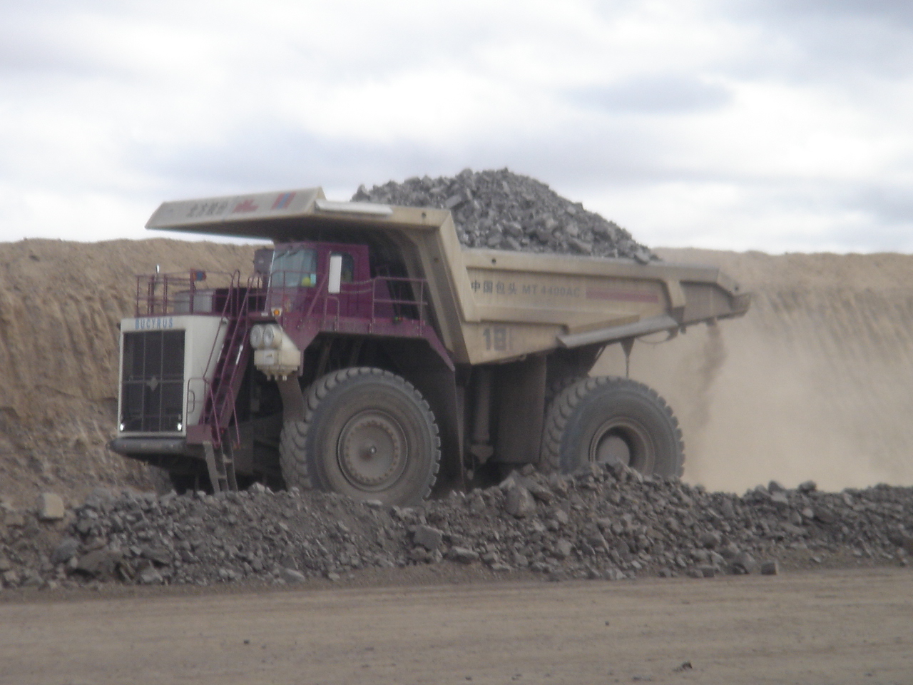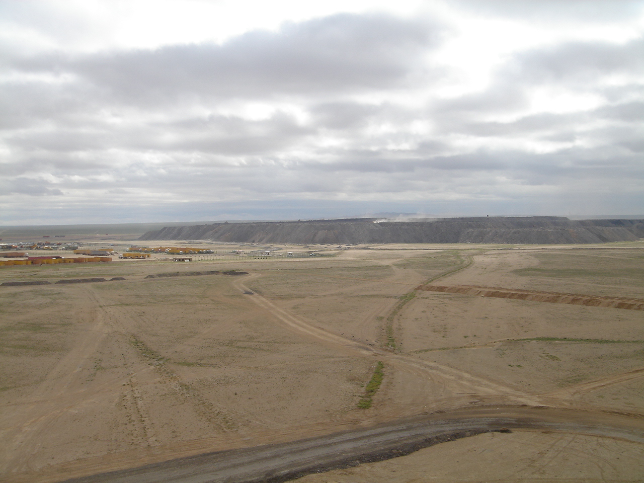 飛行時間は1時間20分ほどで、ウランバートルから南南西に800キロ離れた炭鉱近くの飛行場へ着陸しました。バスに乗り換え、炭鉱へ向かいます。午前中は、エルデネット社の開発する区域を訪問。ここは建物の中での説明が主でした。